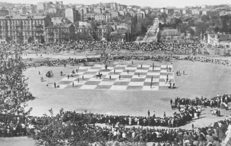 На місці сучасного “Олімпійського” було величезне шахове поле – фігурами виступали справжні люди й коні.