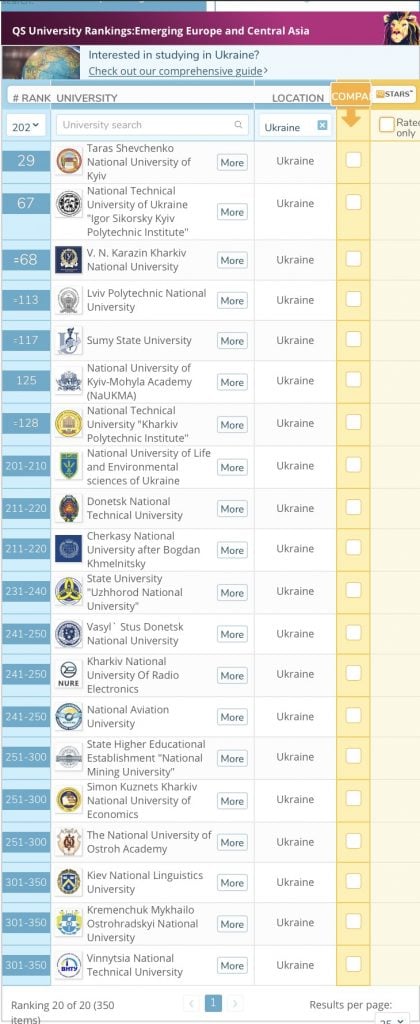 Британська консалтингова компанія Quacquarelli Symonds опублікувала нову версію рейтингу кращих вишів Східної Європи і Центральної Азії. До нього увійшли 350 навчальних закладів з країн регіону, повідомляє AIN.UA.