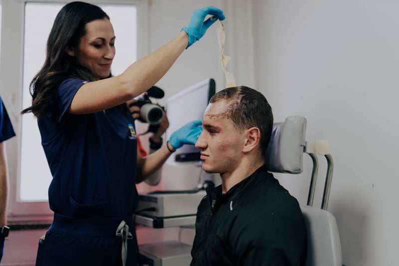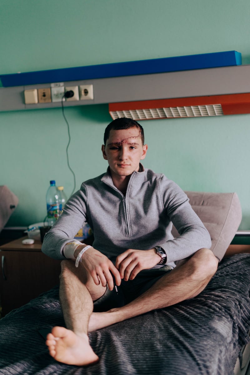 «Ми провели операцію та встановили на місце знищених лобних кісток індивідуальний імплант з титану, який захистив мозок хлопця від ушкоджень та вирівняв чоло. Окрім імпланту ми пересадили сполучну тканину, аби титан не пошкоджував шкіру. Втручання тривало чотири години та дозволила захистити мозок від інфекцій, які знаходяться в носі і пазусі», — розповідає хірургиня з США українського походження Наталія Біскуп, яка вже втретє оперує поранених в Україні.