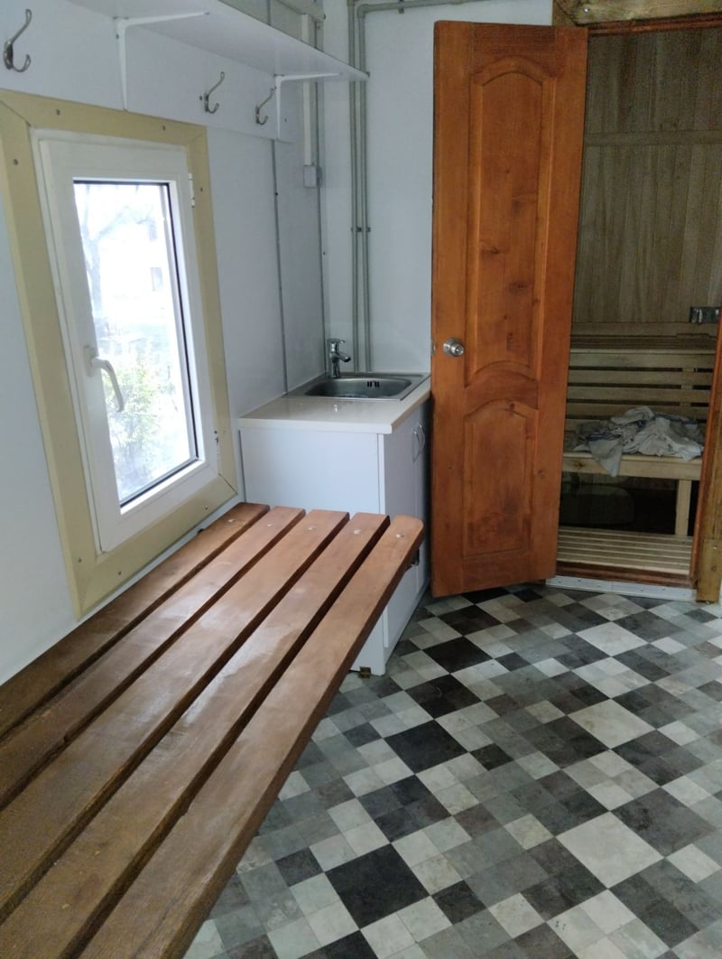 Усі роботи з утеплення, обшивки, облаштування сауни та душових кабінок, монтажу котла, резервуарів для води безкоштовно виконали селищний голова та його помічники. Машину заправили на 6000 грн. Комплекс уже доправили на передову.