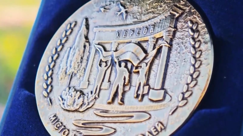 Начальник Херсонської МВА Ярослав Шанько подарував Анджеліні Джолі памʼятний жетон «Херсон».