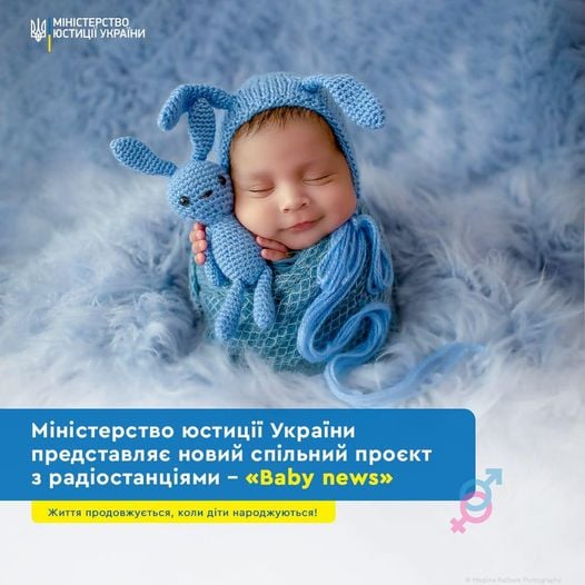 24 вересня стартує новий проєкт Міністерства юстиції та українських радіостанцій. Під час випусків «Бейбі ньюз» розповідатимуть, скільки дітей народилося в Україні за добу.