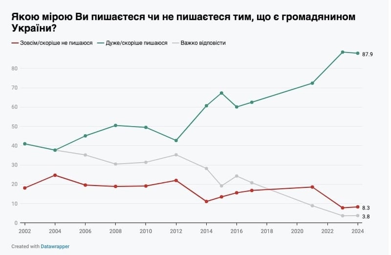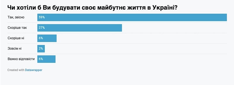 Згідно з опитуванням Фонду «Демократичні ініціативи» та Центру Разумкова, проведеним у серпні 2024 року, 86% українців планують залишитися в Україні та будувати своє майбутнє тут. З цієї кількості, 59% респондентів висловили однозначну налаштованість на проживання в Україні.