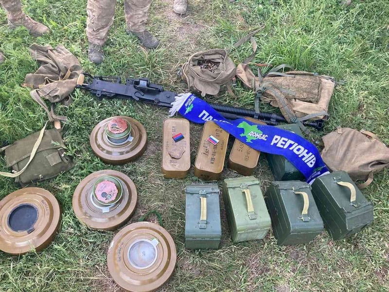 «Після чергового бою в Запорізькій області один із підрозділів полку ССО «Азов» Київ звітує про нові трофеї. Азовці захопили: ворожі боєкомплекти, міни, кулемет та навіть один історичний артефакт — шарф із символікою регіоналів. Здається, фанатів Януковича на нашій землі стало трохи менше», — повідомили бійці «Азову».