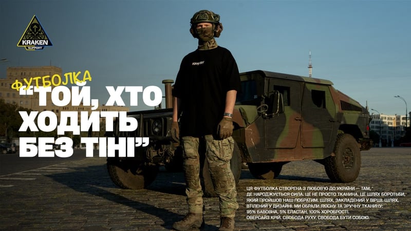 Бійці Kraken презентували футболку «Той, що ходить без тіні» із віршами їхнього побратима. 50% від прибутку за мерч спрямують на потреби підрозділу.