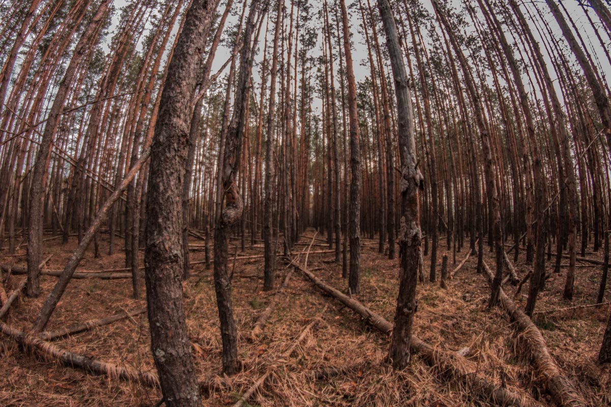 Рудий ліс починається лише за півкілометра від Чорнобильської атомної станції.