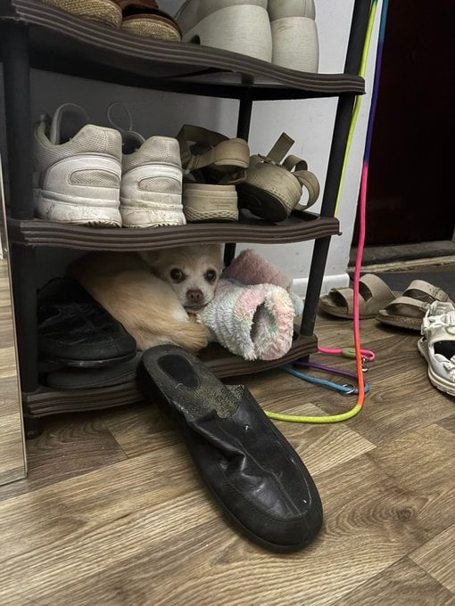 Так написала в Х користувачка buhliwko й показала, як її улюбленець ховається в шафі під звуки роботи ППО.