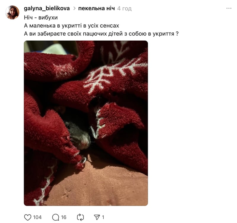 Зробити затишок і вберегти від біди — це завжди робить користувачка Threads galyna_bielikova для своїх улюблених хвостиків — пацюків.