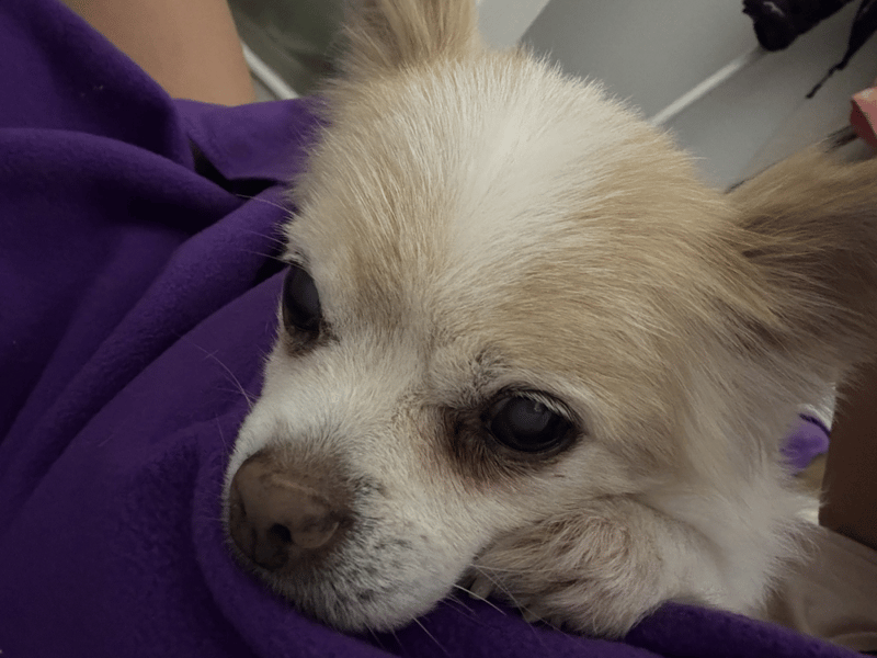 Сьогодні песик знайшов для себе найкраще укриття — обійми своєї людини.