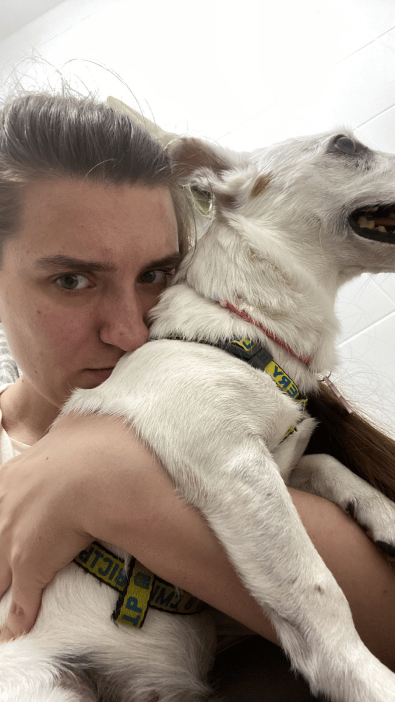 Сьогодні песик знайшов для себе найкраще укриття — обійми своєї людини.