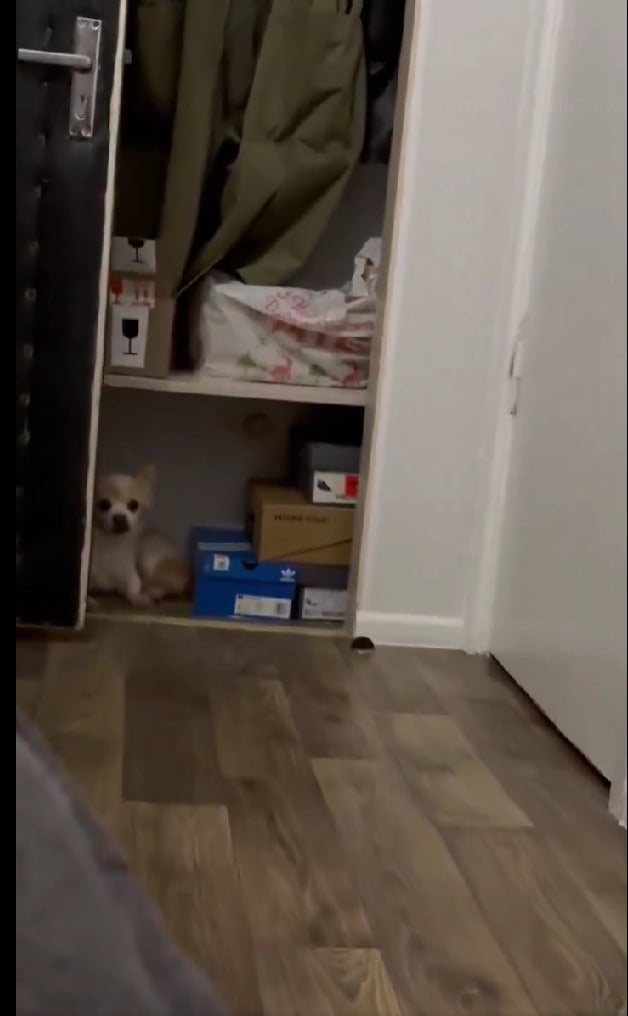 Так написала в Х користувачка buhliwko й показала, як її улюбленець ховається в шафі під звуки роботи ППО.