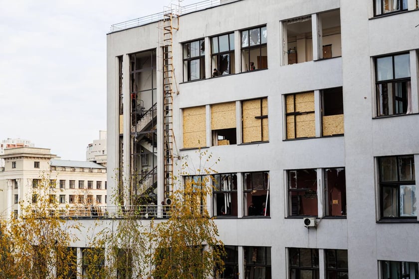 У Харкові ліквідовують наслідки російського обстрілу Держпрому 28 жовтня (будинку Державної промисловості), який знаходиться у списку об’єктів для посиленого захисту ЮНЕСКО.