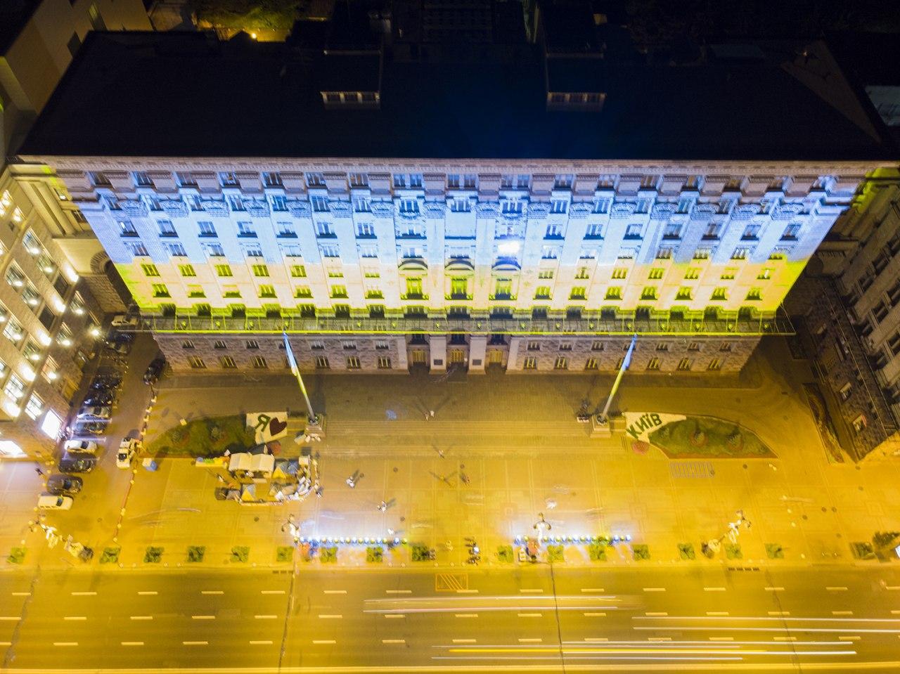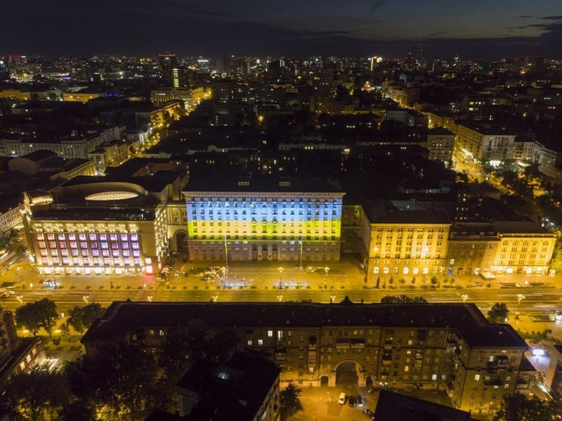 До 30-ої річниці підняття українського національного прапора будівлю КМДА підсвітили синьо-жовтими кольорами підсвітили синьо-жовтими кольорами. Про це повідомляється на офіційному порталі столиці.