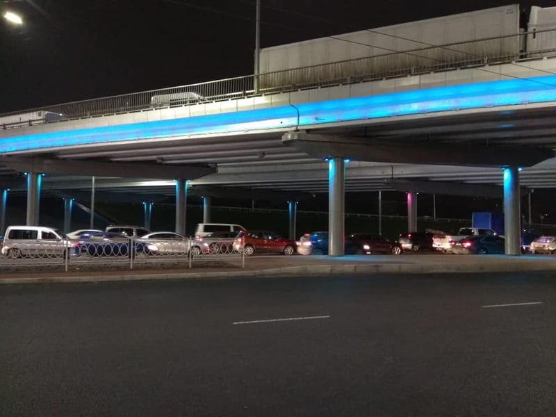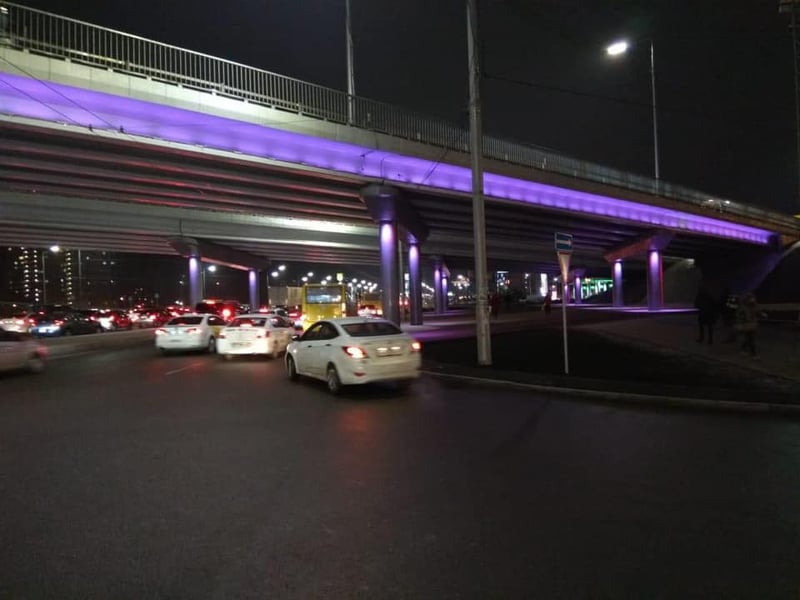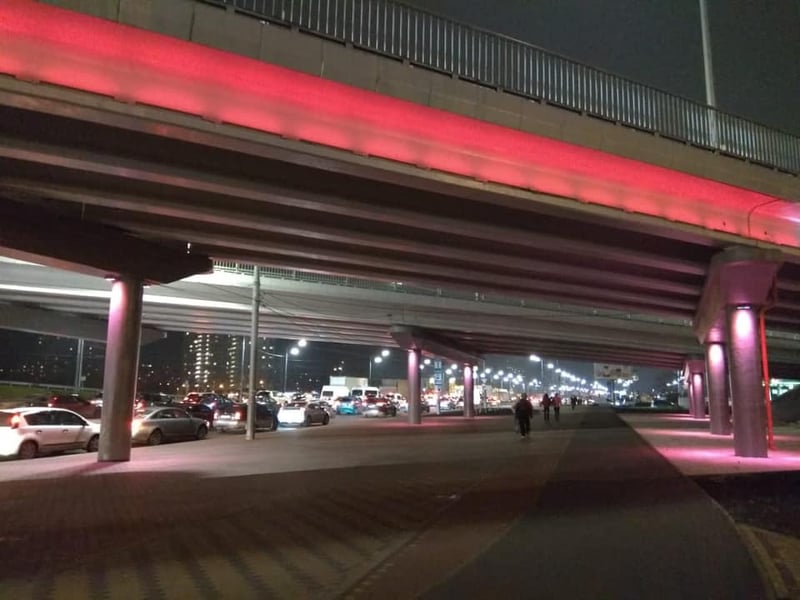 У Києві чотири шляхопроводи отримали декоративну підсвітку – повнокольорову систему із понад 500 LED – світильників, які встановлені відповідно на прогонових будовах та опорах.