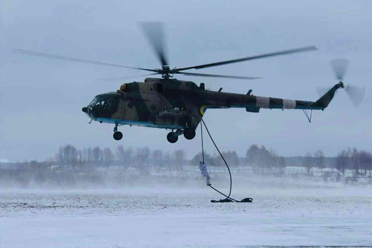 Зазначається, що військові відпрацювали десантування із гелікоптера Мі-8 за допомогою комплекту знімного бортового обладнання «Канат-1».