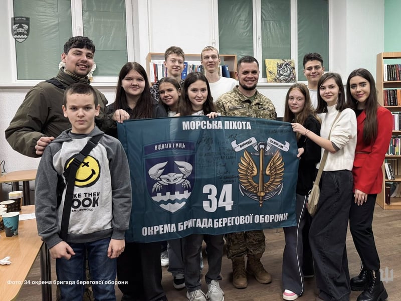 У відповідь військові передали дитячій студії відзнаку та бригадний прапор. Захисники попросили маленьких творців залишити свої підписи на іншому прапорі, який тепер прикрашатиме їхній командний пункт.