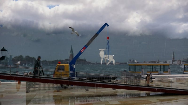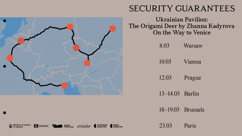 Фінальною точкою маршруту стане Венеція. Там «Оригамі Олень» експонуватиметься на крані вантажівки прямо на набережній лагуни. Український павільйон під назвою «Гарантії безпеки» на бієнале відкриють для відвідувачів 9 травня 2026 року.
