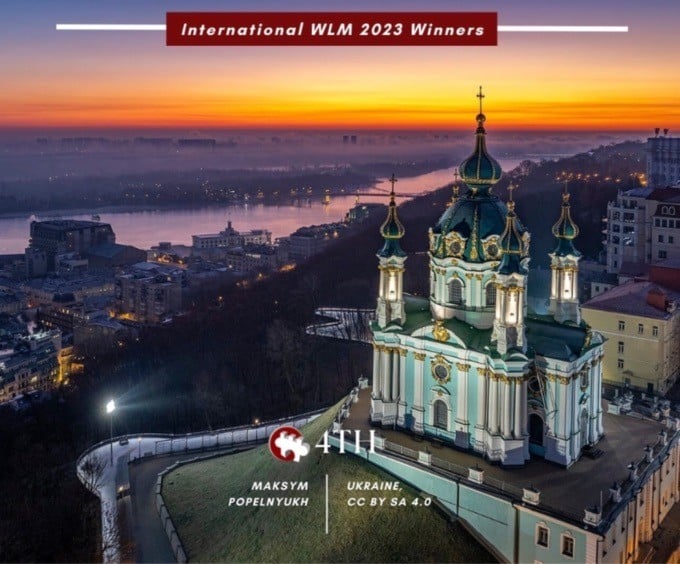 Визначили переможців міжнародного конкурсу “Вікі любить пам’ятки” (Wiki Loves Monuments). Світлина Андріївської церкви фотографа Максима Попельнюха ввійшла до топ-5 та посіла 4 місце.