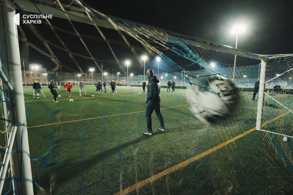 Світлину Вікторія зробила на тренуванні футбольного клубу «Незламні» для ветеранів війни і цивільних, які мають ампутацію кінцівок. Це називають ампфутболом — у нього грають на милицях і на протезах.