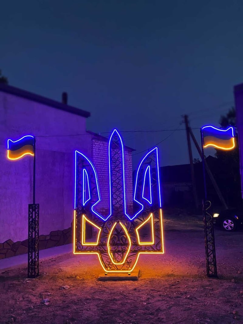 У селі Гурівка на Кіровоградщині встановили триметрову інсталяцію у вигляді Державного Герба України, який підсвічується уночі.