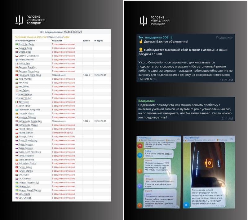 «За попередніми даними, внаслідок кібератаки ГУР МО України сервери перестали працювати, тож усе програмне забезпечення розпізнається як «чуже» і відмовляє рашистам у доступі. Без доступу до серверів, а отже – до системи, керування безпілотниками з пультів, ймовірно, неможливе», — додала українська спецслужба.