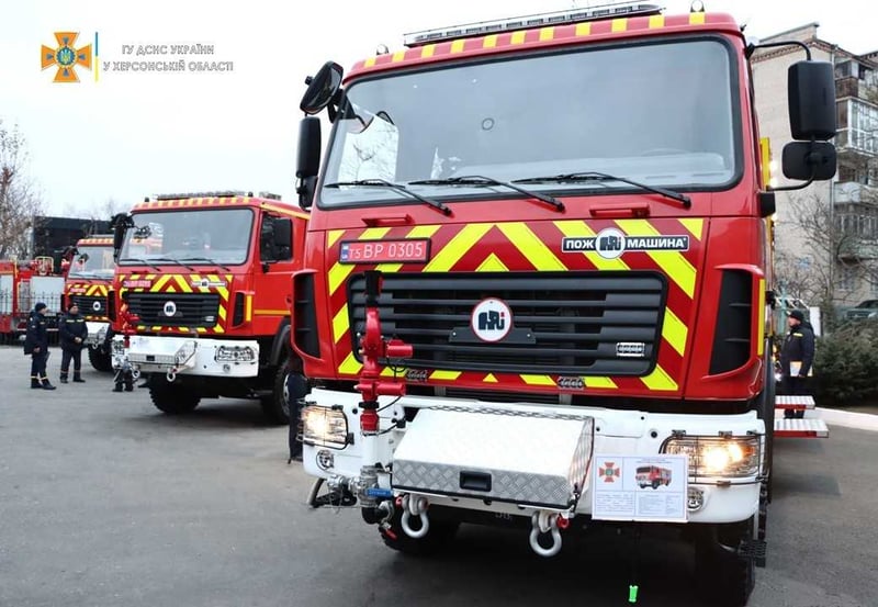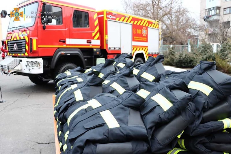 Сертифікати та ключі від пожежних автомобілів отримали начальники Державних пожежно-рятувальних загонів Херсонського, Генічеського та Бериславського районів. Також у підрозділи передано 90 комплектів бойового одягу.