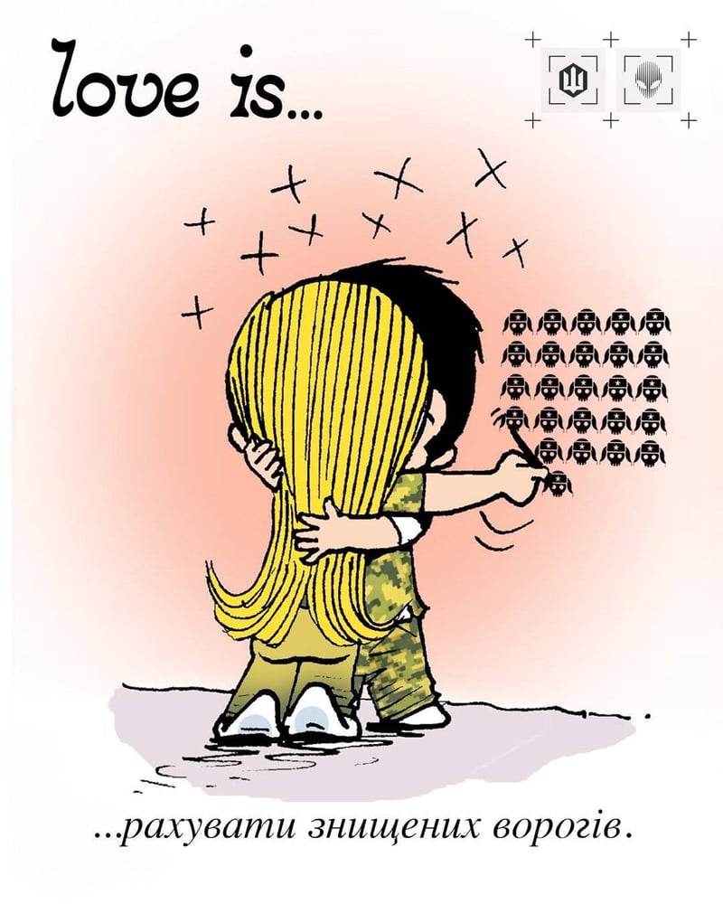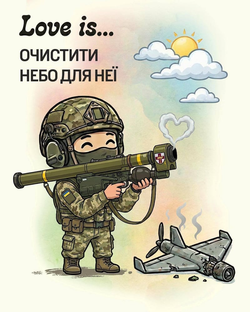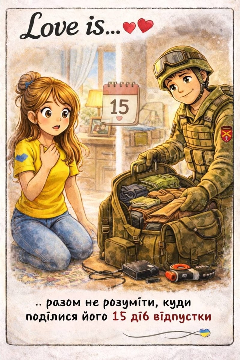 Різні бригади Сил оборони створили тематичні листівки до Дня святого Валентина. Військові показали своє бачення любові в умовах війни, адаптувавши відомий стиль наліпок «Love is…».