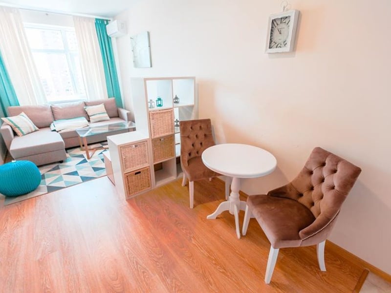 Головне, що за такі ціни, як для Києва, тут немає совкового ремонту чи обдертих меблів. Вся техніка та меблі нові, а дизайн квартир виконаний у спокійних пастельних тонах. Ніяких коврів і шпалерів в квіточку.