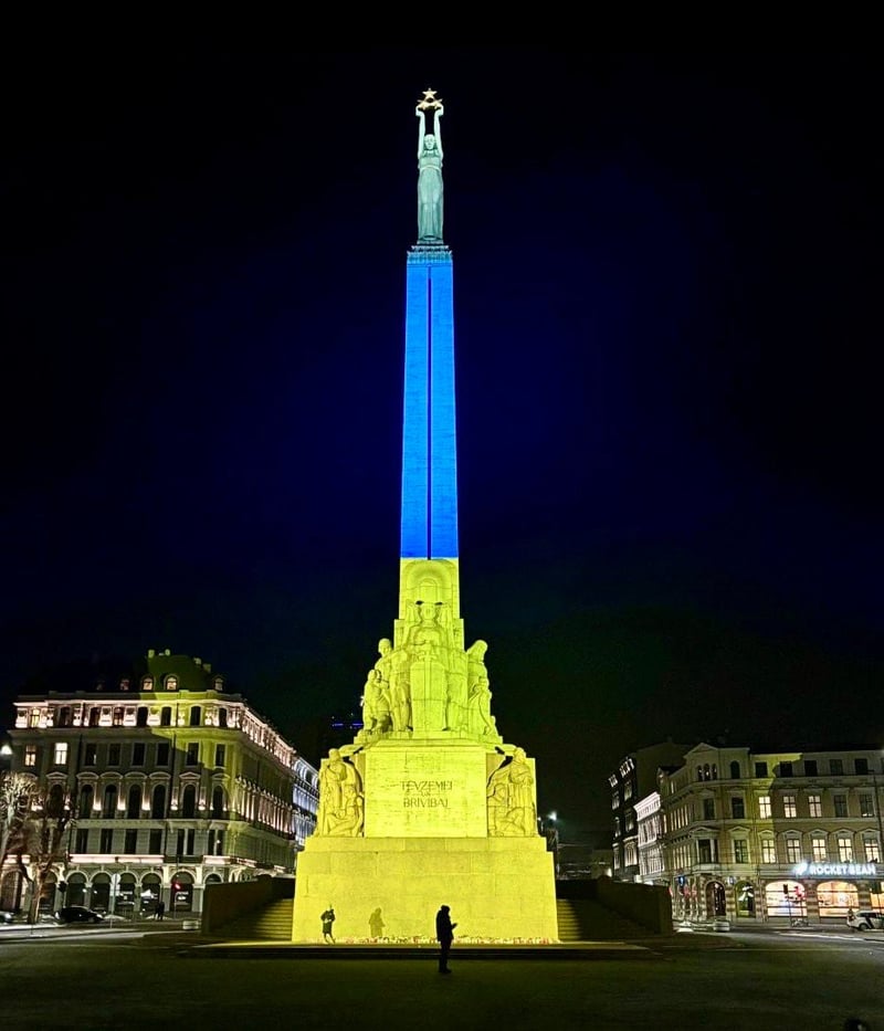 До четвертої річниці повномасштабного вторгнення росії в Україну найвідоміші архітектурні пам’ятки та урядові будівлі в різних куточках планети підсвітили кольорами українського прапора.