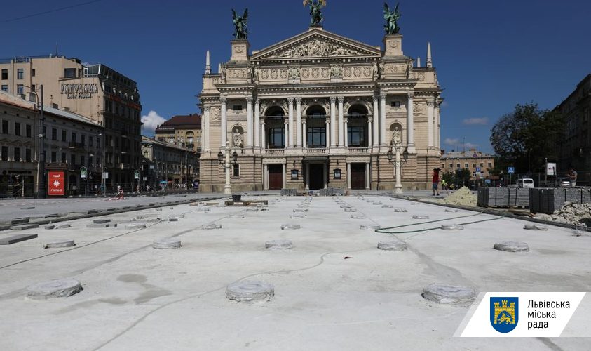 У Львові перед Оперним театром тривають роботи з облаштування сухого фонтану. До кінця вересня роботи планують завершити, повідомляє пресслужба міськради.