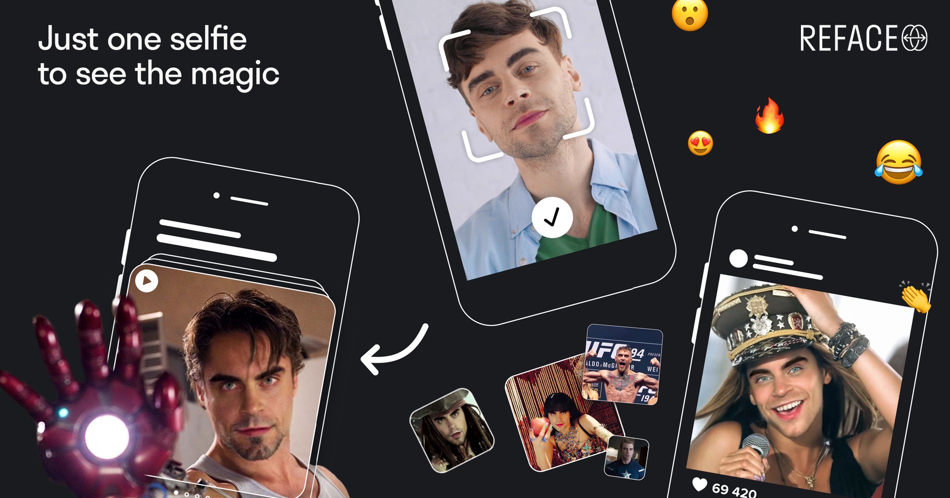 RefaceAI розвиває технологію заміни облич на фото або відео зі збереженням міміки. За словами розробників, на відміну від інших додатків для заміни осіб, вони не використовують CGI або 3D-моделювання.