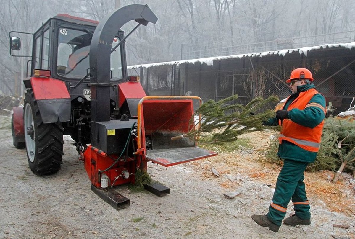 Зібрані дерева перероблять на тріску в спеціальному тріскоподрібнювачу і використають навесні для зберігання водного балансу лунок вічнозелених рослин у місті.