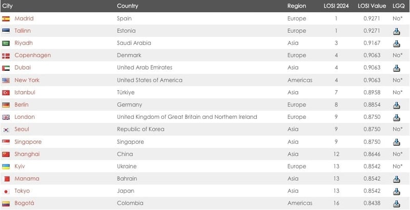 Лідерами рейтингу стали два міста: Мадрид (Іспанія) та Таллінн (Естонія). Третє місце зайняв Ер-Ріяд (Саудівська Аравія), який показав великі досягнення в цифрових технологіях.