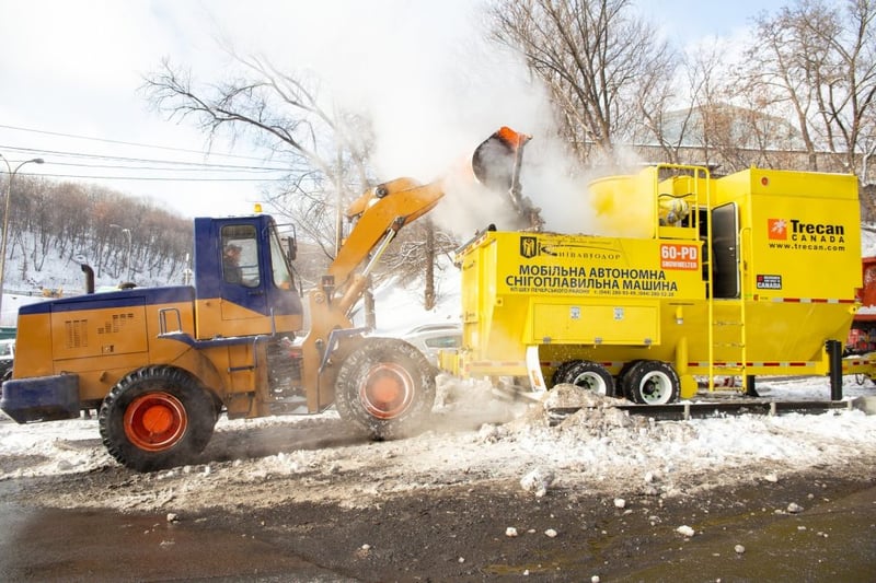 Також торік «Київавтодор» придбав два снігоплавильні комплекси з Канади: машина переробляє близько 60 тонн снігу за годину.