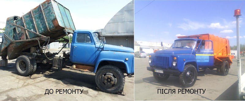 Автомеханіки замінили насосну установку, оновили коробку передач, відремонтували кабіну, встановили нові бампери і фари. Також провели зварювання і фарбування кузова.
