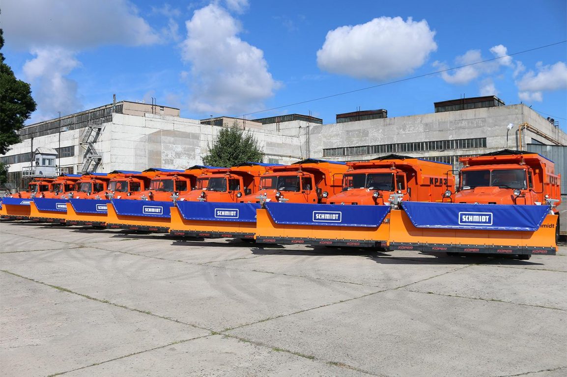 “АвтоКрАЗ” передав підприємству “Київський облавтодор” чергову партію комбінованих дорожніх машин із солерозкидальним обладнанням точного дозування та поворотним відвалом на базі самоскида КрАЗ-65055-05, призначених для цілорічного утримання магістральних та міських автодоріг із асфальто- та цементобетонним покриттям