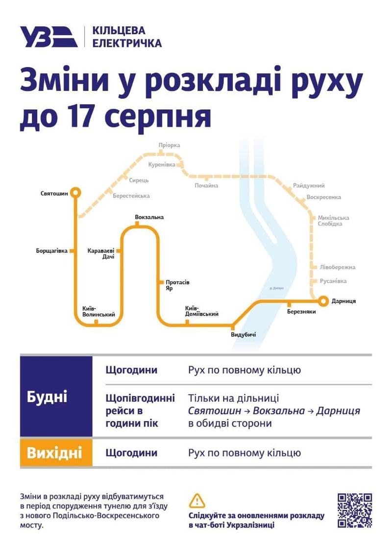 Залізничники також повідомляють, що у серпні кільцева електричка у вихідні ходитиме на Почайну через Троєщину щогодини.