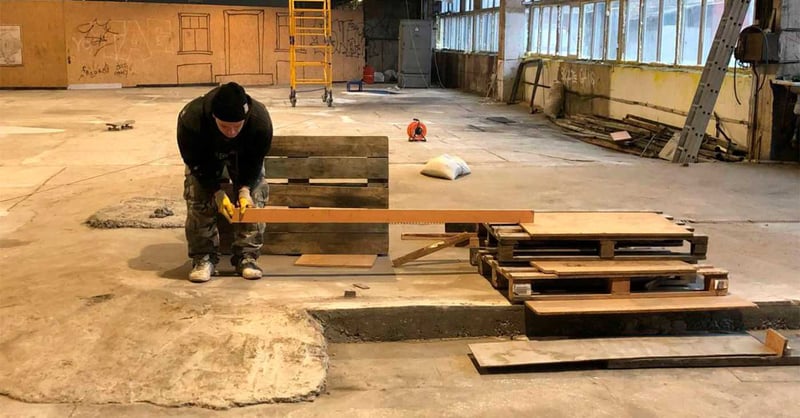 Київський скейтер та художник Максим Павленко разом із друзями будують скейт-парк в одному з приміщень колишнього заводу поблизу Харківського шосе.