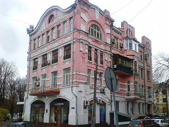 Історична будівля знаходить на вулиці Омеляновича-Павленка, 14/12. Це прибутковий будинок зведений 1912 року архітектором Євгеном Єрмаковим, який на замовлення київської єпархії спроєктував низку споруд у Києві, зокрема кілька храмів, монастирських будівель, прибутковий будинок Микільського собору на Печерську тощо.