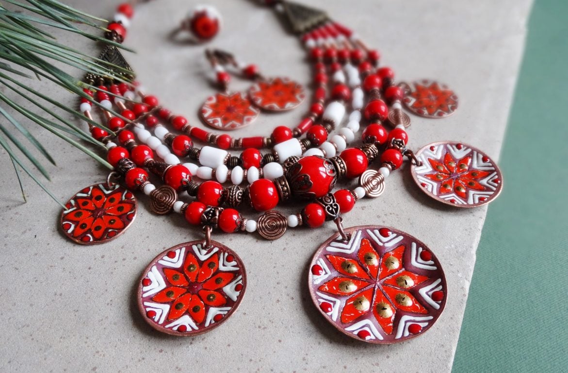 “Прикраса починається з того, що спочатку мій чоловік Гриць ріже мідь на пластини, проколюючи їх в місцях кріплень майбутнього виробу. Далі вони занурюються в азотну кислоту – для очищення. За тим на пластини накладаються візерунки емалі, які кладемо в спеціальну піч для випалювання, розігріту до 860 градусів”, – розповідає майстриня.