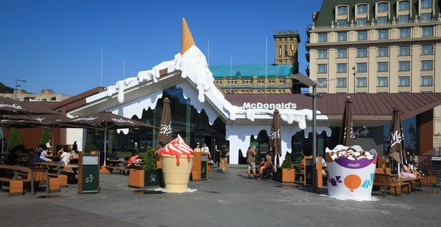 «Вперше за все існування „МакДональдз“ в Україні ми вирішили кардинально змінити зовнішній вигляд ресторану, щоб зробити літо наших відвідувачів особливим, а місту подарувати новий арт-об’єкт. Велика інсталяція нашого морозива знаходиться на одному з найбільш відвідуваних ресторанів на Поштовій площі і простоїть там весь теплий період», — прокоментувала Ольга Васильєва, директор по маркетингу «МакДональдз» в Україні.