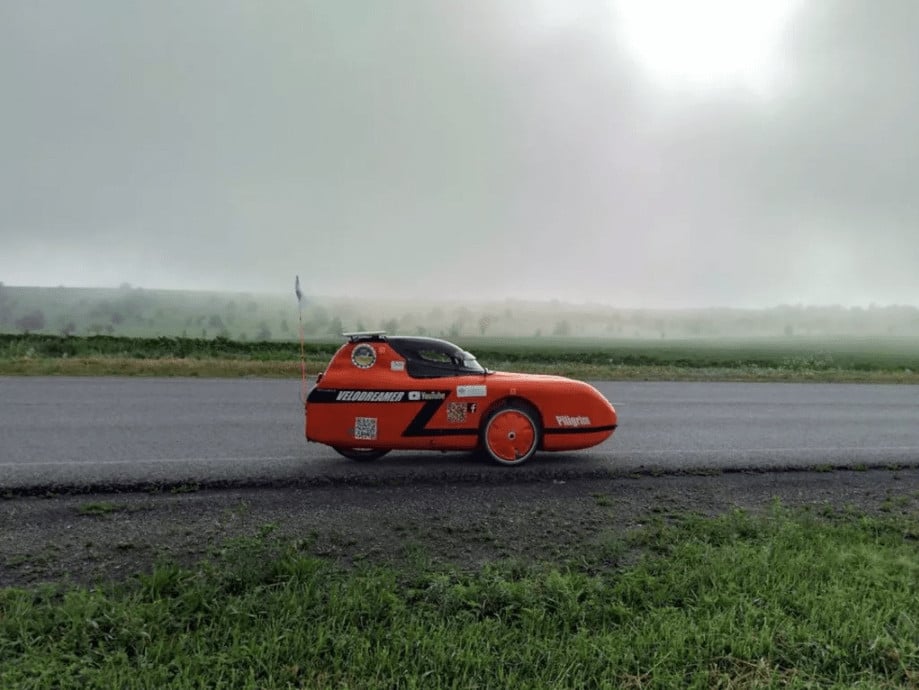 Веломобілем мрії став цей футуристичний “Пілігрим”. Важить 40 кг і набирає до 50 км/год. Всередині вбудована сонячна панель – живить вентилятор, павербанк та ліхтарі. Та встановлена підвіска на всі колеса для амортизації на дорогах.