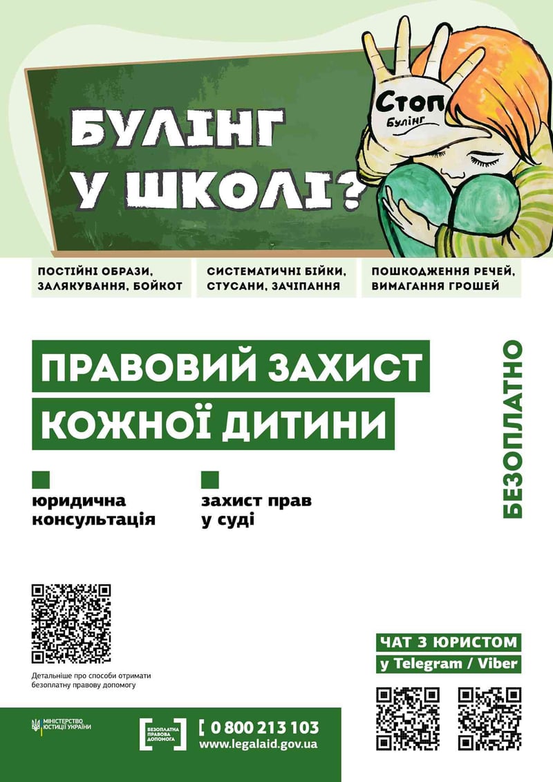 З метою протидії булінгу та роз’яснення дітям їхніх прав Міністерство юстиції України проводитиме просвітницькі заходи в школах.