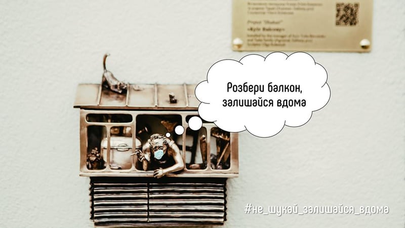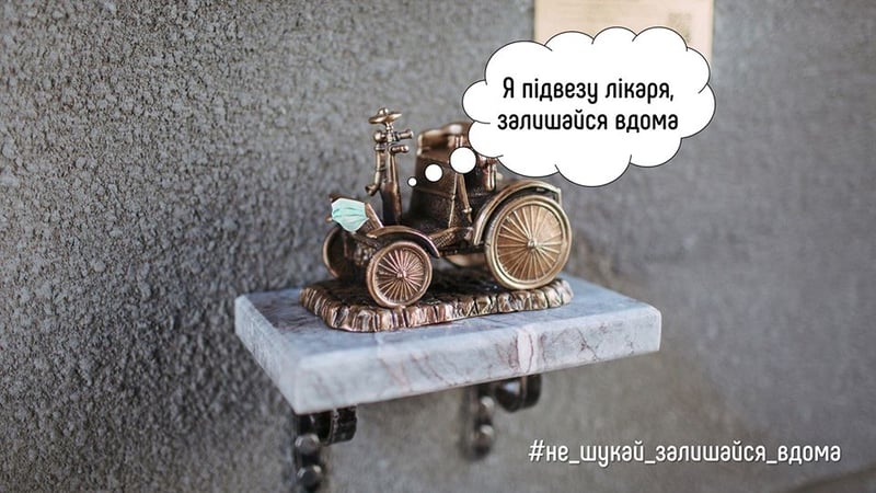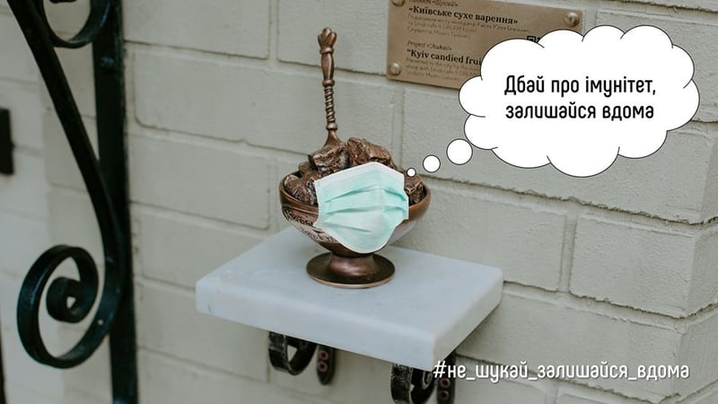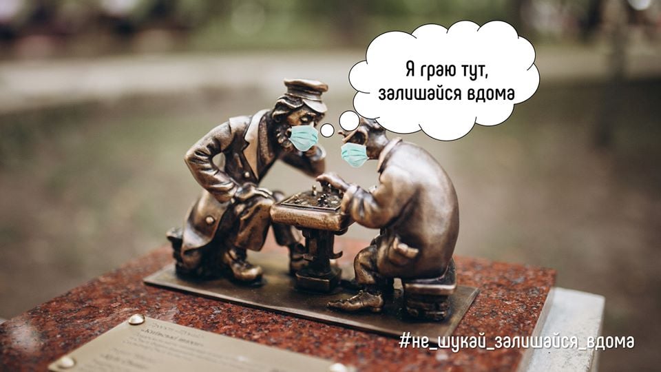 Бронзові мініскульптурки проекту «Шукай» теж «одягнули» медичні маски і, як і всі кияни, пішли на карантин.
