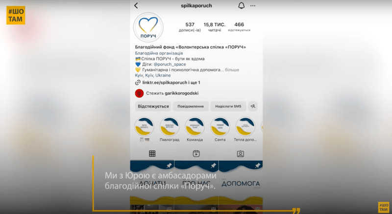 Ми з Юрою є амбасадорами благодійної спілки «Поруч». Разом з іншими амбасадорами ми вже закрили збір на автоматизовані годівнички для котів і собак у гарячих точках. Частину коштів з продажів ми донатимо на ЗСУ. Ми з Юрою особисто також робимо збори й наразі збираємо на Starlink.