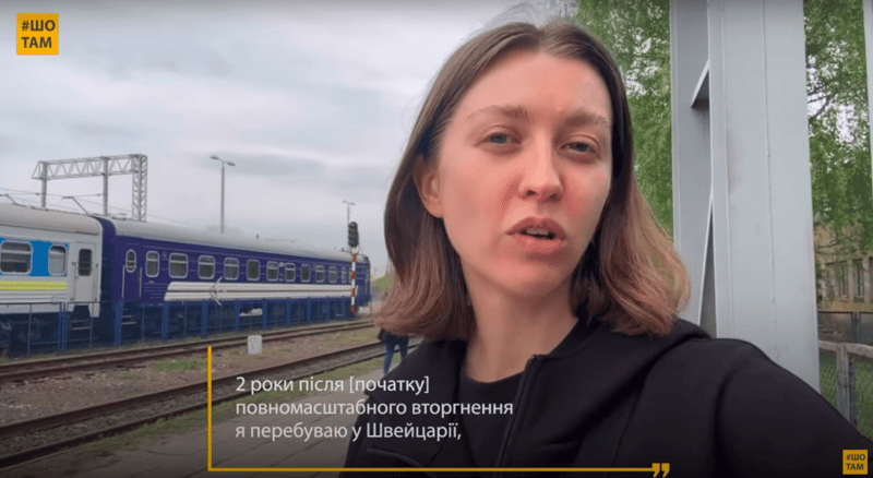 2 роки після [початку] повномасштабного вторгнення я перебуваю у Швейцарії, але ось зараз прямую додому навідати маму, навідати свою сімʼю. І хочеться в якийсь момент просто сісти на цей потяг і вже не повертатися назад – щоб вдома не було обстрілів, щоб була наша Перемога.