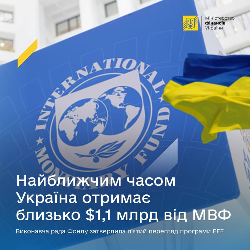 Виконавча рада МВФ завершила пʼятий перегляд програми в рамках Механізму розширеного фінансування для України. Це дозволить передати Україні ще 1,1 мільярда доларів.