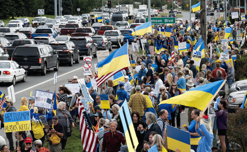 У Анкориджі 14 серпня кілька сотень людей зібралися на перехресті Seward Highway та Northern Lights Boulevard, щоб висловити підтримку Україні та засудити дії росії.