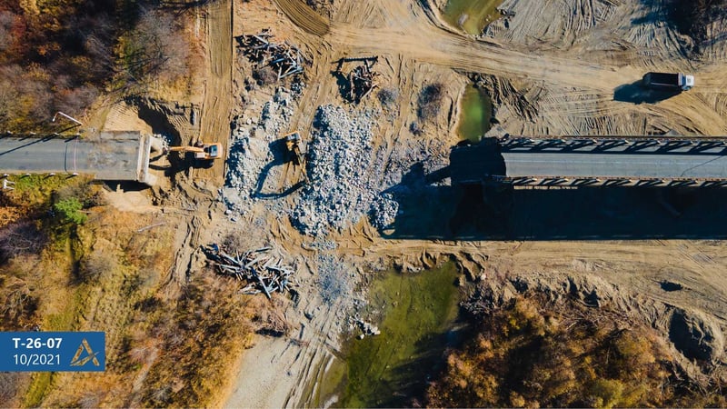 Триває демонтаж мостового полотна. На сьогодні вже демонтовано 2 прогони та опору прогонової споруди. Далі буде влаштовано 182 буронабивні палі для укріплення фундаменту опор та фундаменти для нових опор.