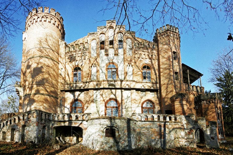 Починаючи з 1850-го за 30 років був побудований двоповерховий палац у класичному стилі, який прикрашали дві вежі в три поверхи. З першого поверху можна було вийти на балкон, з якого відкривався вид на парк. Територія замку й листяної частини парку була оточена цегляним парканом. Для будівництва всіх цих об’єктів була потрібна дуже велика кількість цегли, тому братам навіть довелося відкрити свій власний цегляний завод.